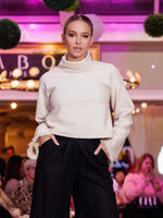 A magas garbónyak és a hosszú ujjak finom részletei melegséget és eleganciát sugároznak, miközben a szabás laza, mégis nőies. Ideális választás a leghidegebb napokra, amikor a kényelem és a stílus egyformán fontos.