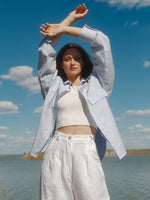 A KHAMSIN SHIRT az upcycling és a tudatos design találkozása: új életet ad a megmaradt anyagoknak, és egy időtlen, elegáns és fenntartható formába ölti.
